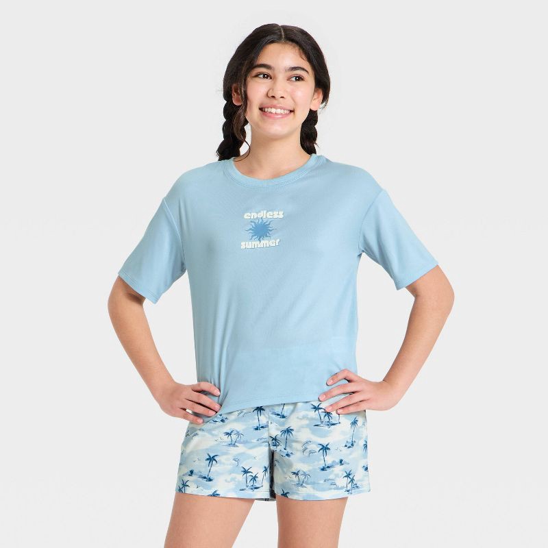 Girls' Oversized 'Endless Summer' Graphic Pajama Top - art class™ Blue M