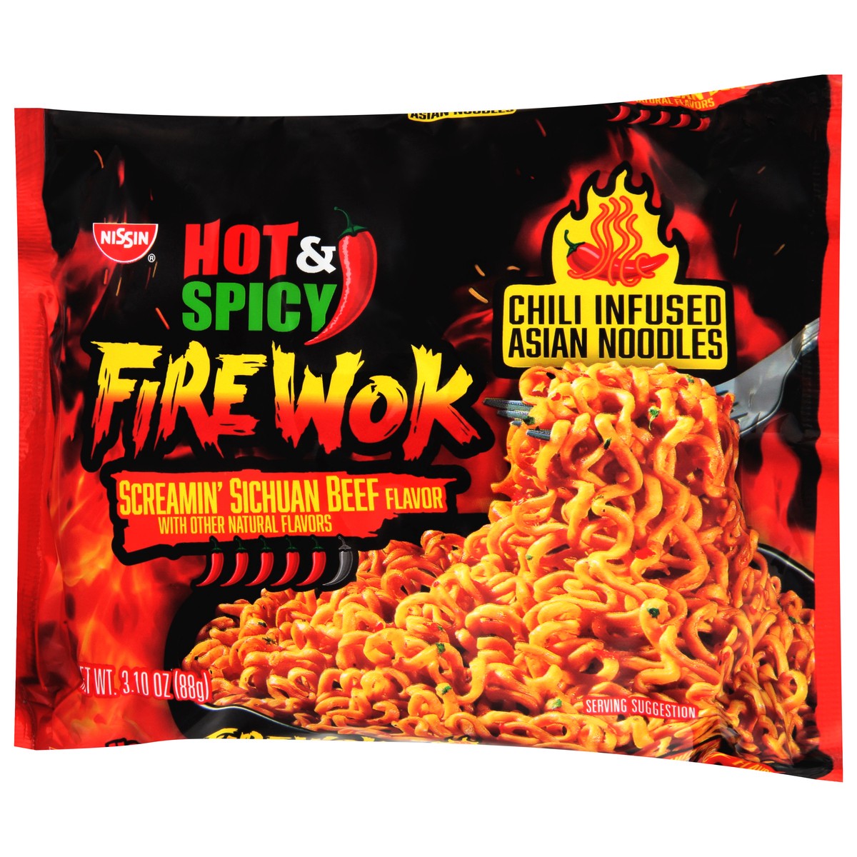 The heat is in the noodle! Nissins new Fire Wok ramen noodles have fiery and flavorful chili flakes infused right into the noodles for more of the heat you crave in every bite.