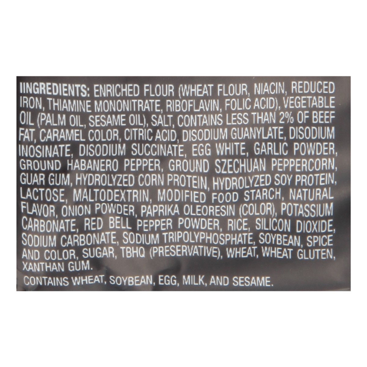 Enriched Flour (Wheat Flour, Niacin, Reduced Iron, Thiamine Mononitrate, Riboflavin, Folic Acid), Vegetable Oil (Palm Oil, Sesame Oil), Salt, Contains Less than 2% of Beef Fat, Caramel Color, Citric A…