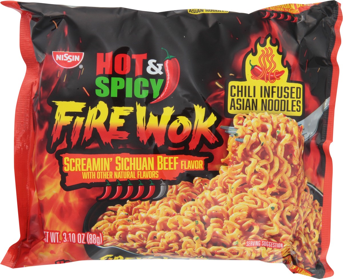 Nissin Fire Wok Hot & Spicy Screamin'' Sichuan Beef Flavor Asian Noodles 3.10 oz