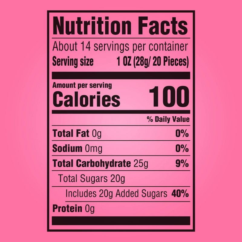 SUGAR, CORN SYRUP, MODIFIED CORNSTARCH; LESS THAN 2% OF: CITRIC ACID, ACACIA, SODIUM CITRATE, APPLE JUICE FROM CONCENTRATE, NATURAL AND ARTIFICIAL FLAVORS, CONFECTIONER'S GLAZE, CARNAUBA WAX, COLORS (…