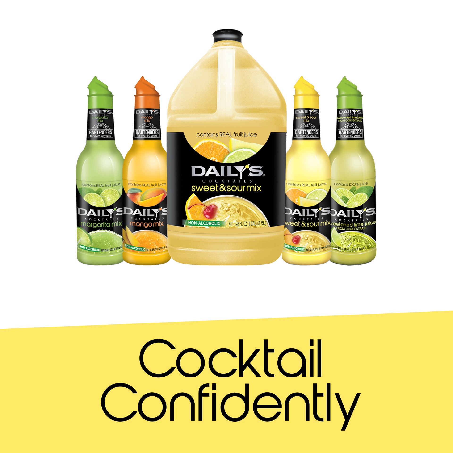 Bring the delicious flavor of real fruit juice to countless drinks with Daily's Cocktails Sweet and Sour Mix. This high-quality sweet and sour mix is made with real lemons, limes and oranges and deliv…