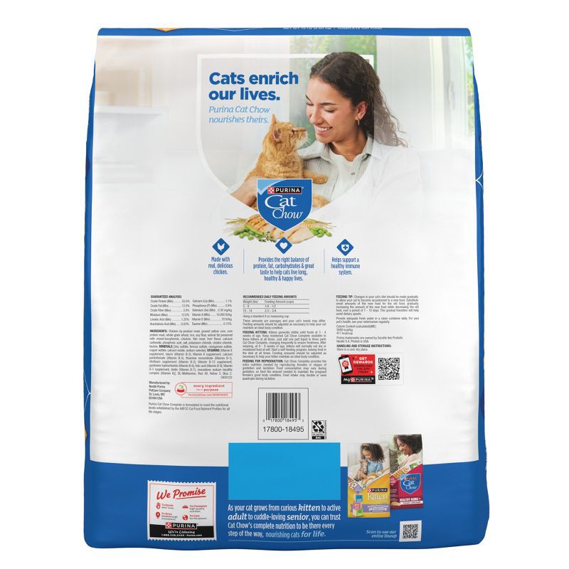 - FOR CATS AT EVERY STAGE OF LIFE: Purina Cat Chow Complete High Protein Dry Cat Food with Real Chicken is suitable for kittens and adults alike.