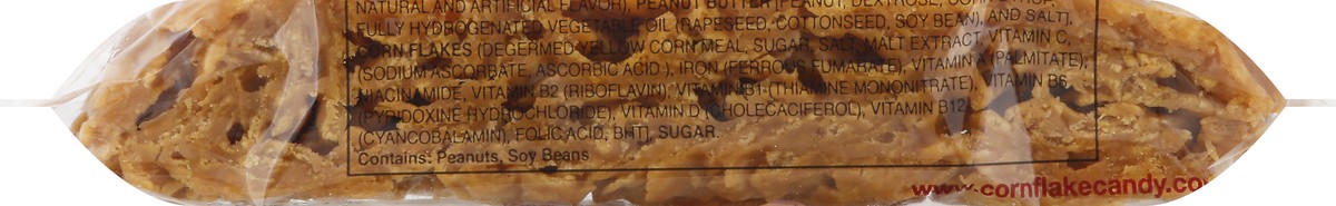 Per 1 oz serving: 130 calories; 2 g sat fat (10% DV); 130 mg sodium (5% DV); 14 g sugars. Made with creamy peanut butter. www.cornflakecandy.com.