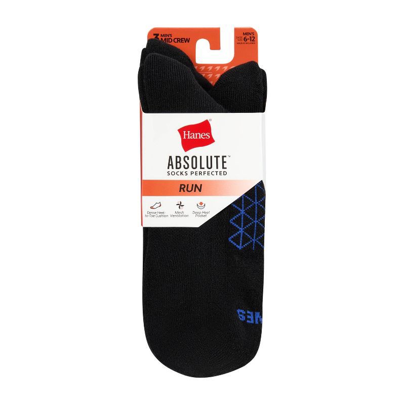 Hanes Men's Absolute Run Crew Socks 3pk - Black 6-12