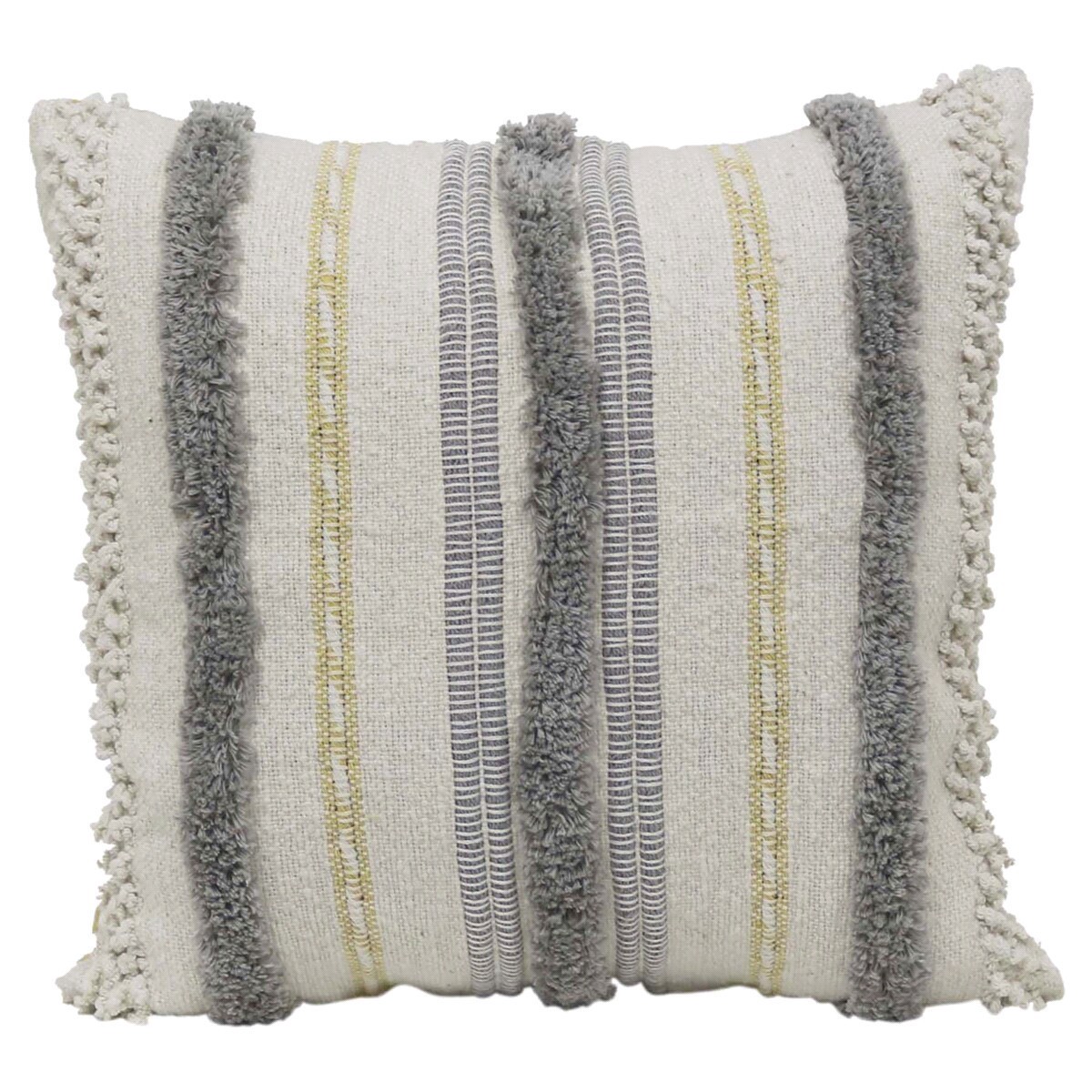 Update your living space with this lovely decorative pillow featuring a textural stripe in yellow and grey.