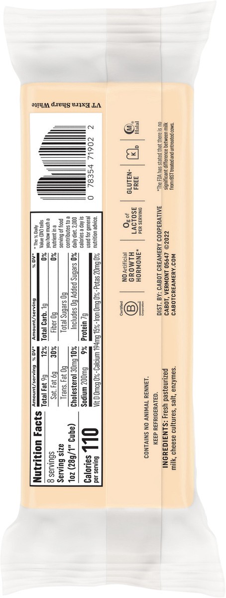 Cabot's expert cheese graders age our premium Vermont Extra Sharp Cheddar for a minimum of 12 months until it reaches the very peak of cheddar perfection. And all that patience pays off in every lusciā¦