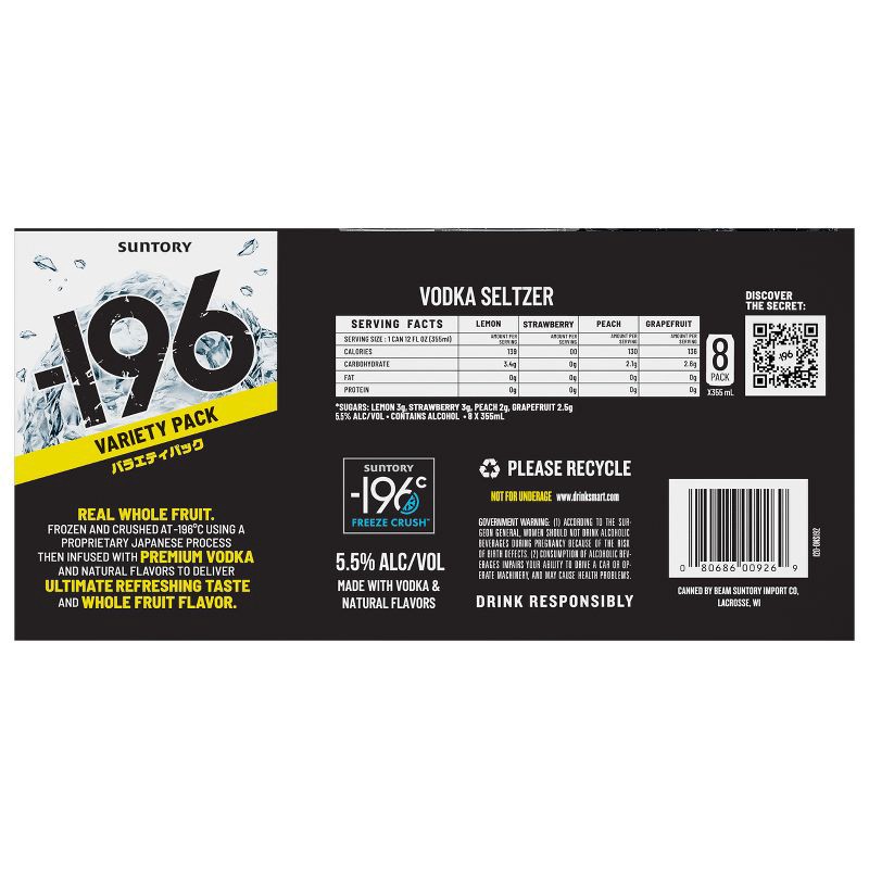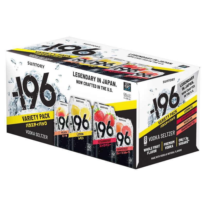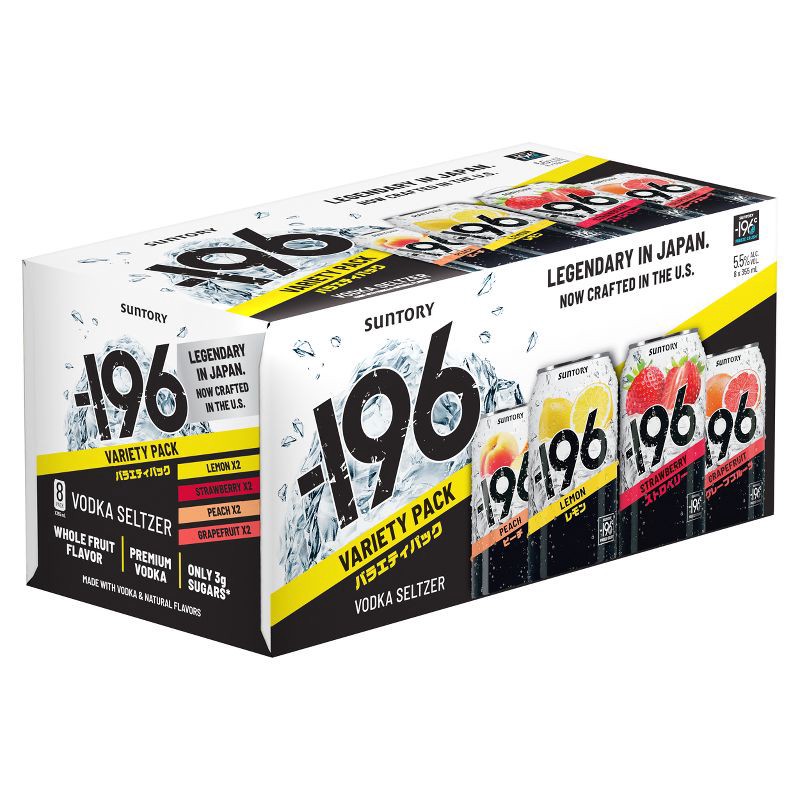 -196 Vodka Seltzer is a bold, premium offering for spirit seltzer lovers. This 8-pack features the distinctive, tart flavor profile Suntory Global Spirits customers love, while offering a natural-tast…