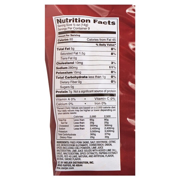 Whether brought to tailgate or on the adventure of a road trip, Meijer Chili Lime Pork Rinds will satisfy even your craziest cravings for crunch! A great base for nachos or eaten by the handful, this …