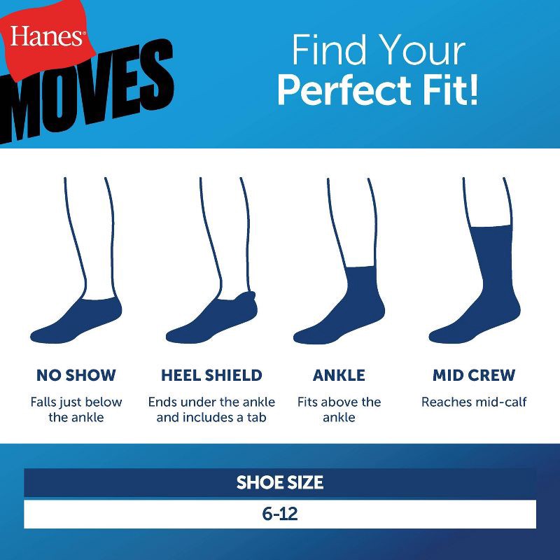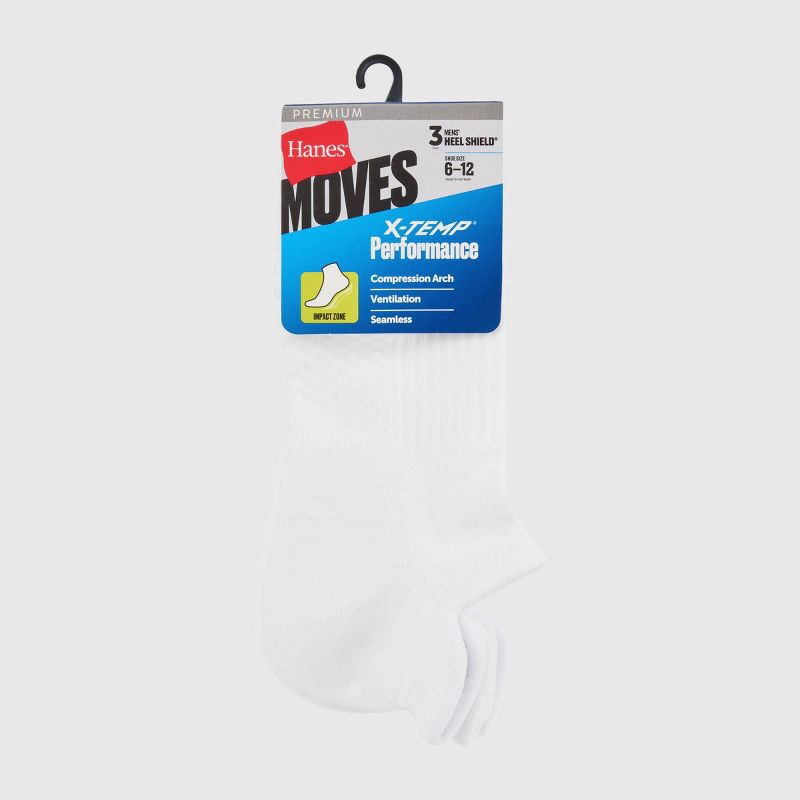 Designed for a barely-there look, this Hanes® Premium Moves Impact Zone men's no-show sock 3-pack stays hidden inside low-cut sneakers and casual shoes. Made to fit men's shoe sizes 6-12, the low-prof…
