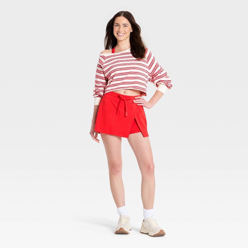 Women's Washed Jersey Off The Shoulder Cropped Long Sleeve Top - JoyLab™ Red Stripe XL