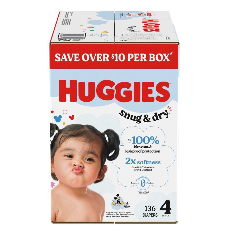 - Huggies Size 4 Diapers: 136 Snug & Dry Baby Diapers, size 4 (22-37 lbs)