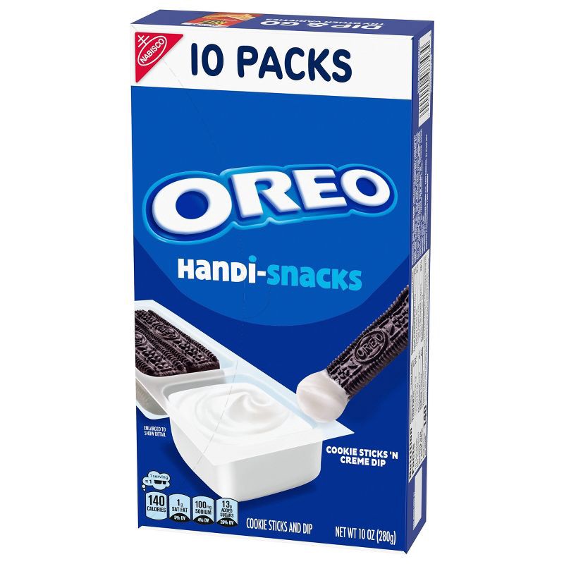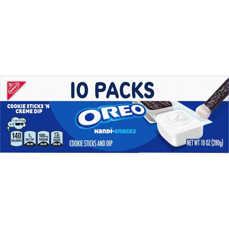 - One box with 10 Handi-Snacks OREO Cookie Sticks 'N Creme Dip Snack Packs (packaging may vary)