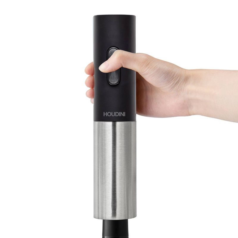 Houdini Electric Wine Corkscrew Set: Stainless Steel & ABS, 6-Piece Barware, Battery Operated Wine Opener, Black