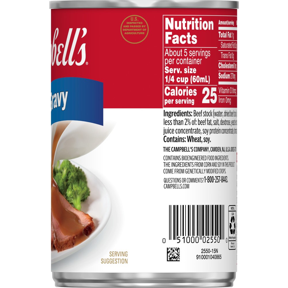 Add a touch of comfort to your cooking with the homemade taste of Campbell''s Beef Gravy – now with more beef flavor. Made with real beef stock and seasoned with herbs and spices, this savory brown gr…