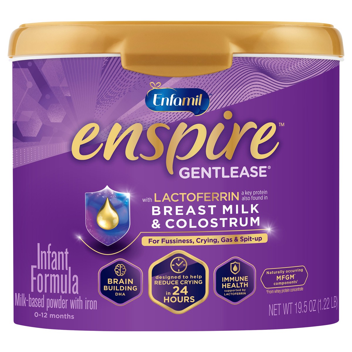 IFCN Enfamil Optimum Gentlease Baby Formula, Our Closest Formula to Breast Milk For Fussiness, Crying, Gas & Spit-up, Immune-Supporting Lactoferrin also found in Breast Milk, 19.5 Oz