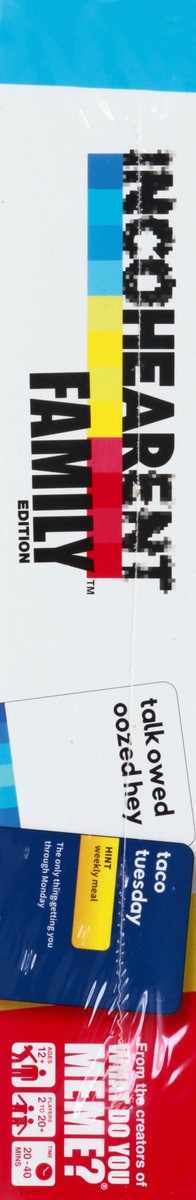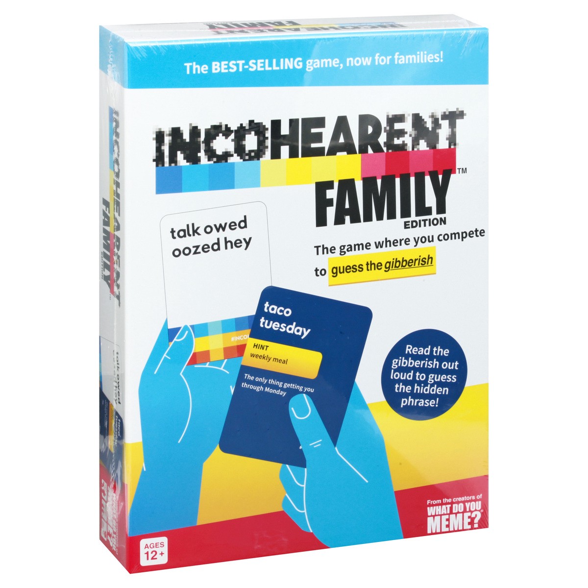Family Edition Ages 12+ Years. The best-selling game, now for families!. Talk owned oozed hey. The game where your complete to guess the gibberish. Taco Tuesday. Hint weekly meal. The only thing getti…
