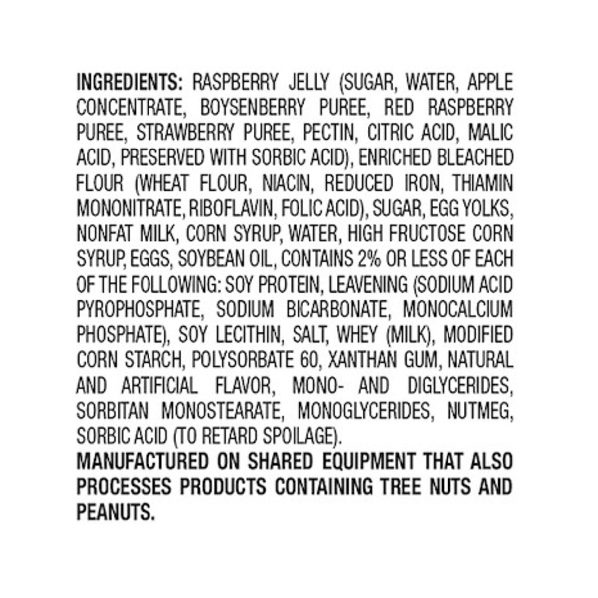 Raspberry Jelly (Sugar, Water, Apple Concentrate, Boysenberry Puree, Red Raspberry Puree, Strawberry Puree, Pectin, Citric Acid, Malic Acid, Preserved with Sorbic Acid), Enriched Bleached Flour (Wheat…