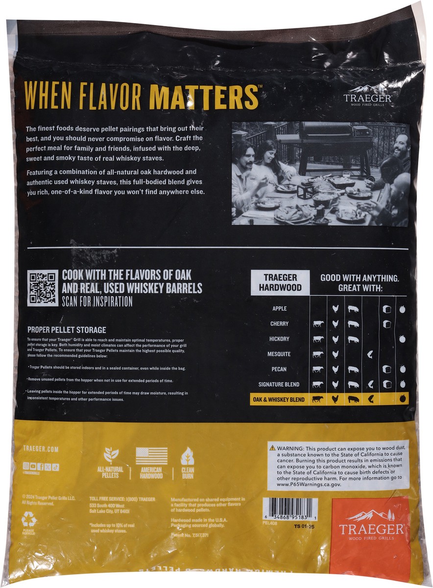 Traeger Premium Hardwood Oak & Whiskey Blend Pellets 18 lb