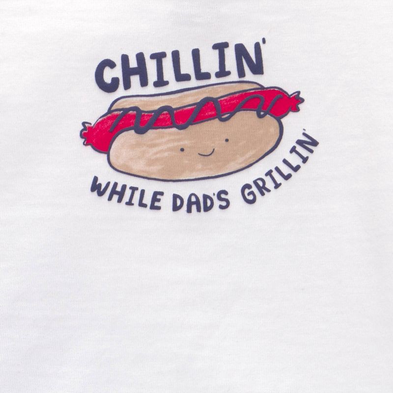 - Adorable 2-piece set featuring a playful “Chillin'” hot dog graphic for a fun summer vibe