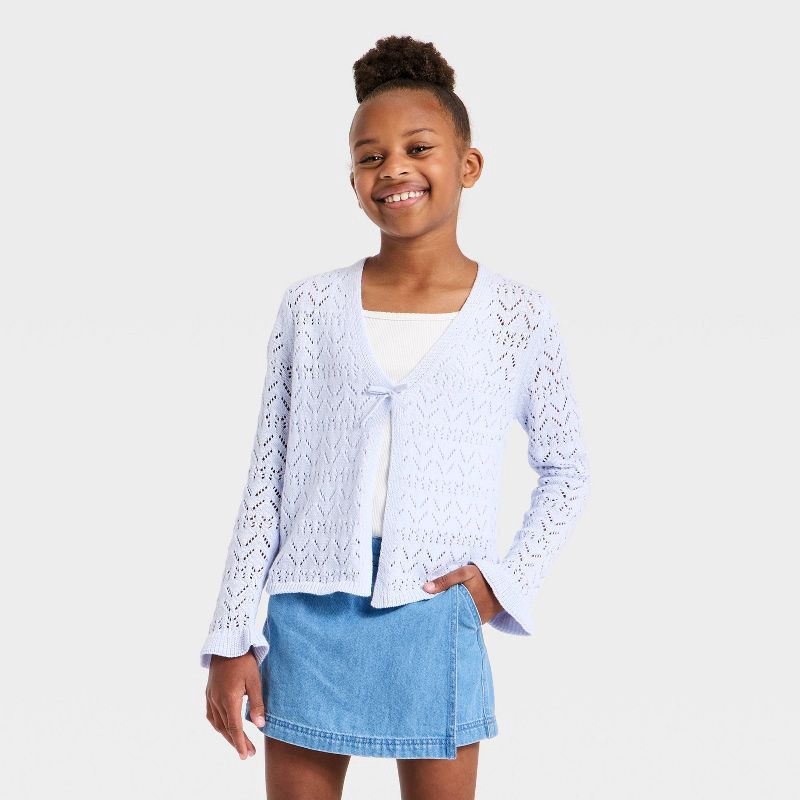 Girls' Pointelle Open Cardigan Sweater - Cat & Jack™ Pale Lavender XL
