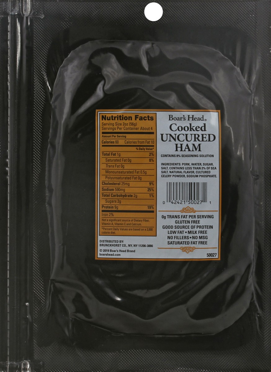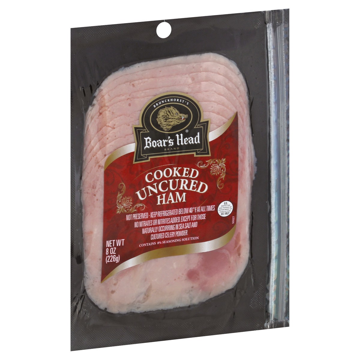 Boar's Head Cooked Uncured Ham is slow-cooked for a tender taste and Pre-Sliced in a resealable package for on-the-go convenience.