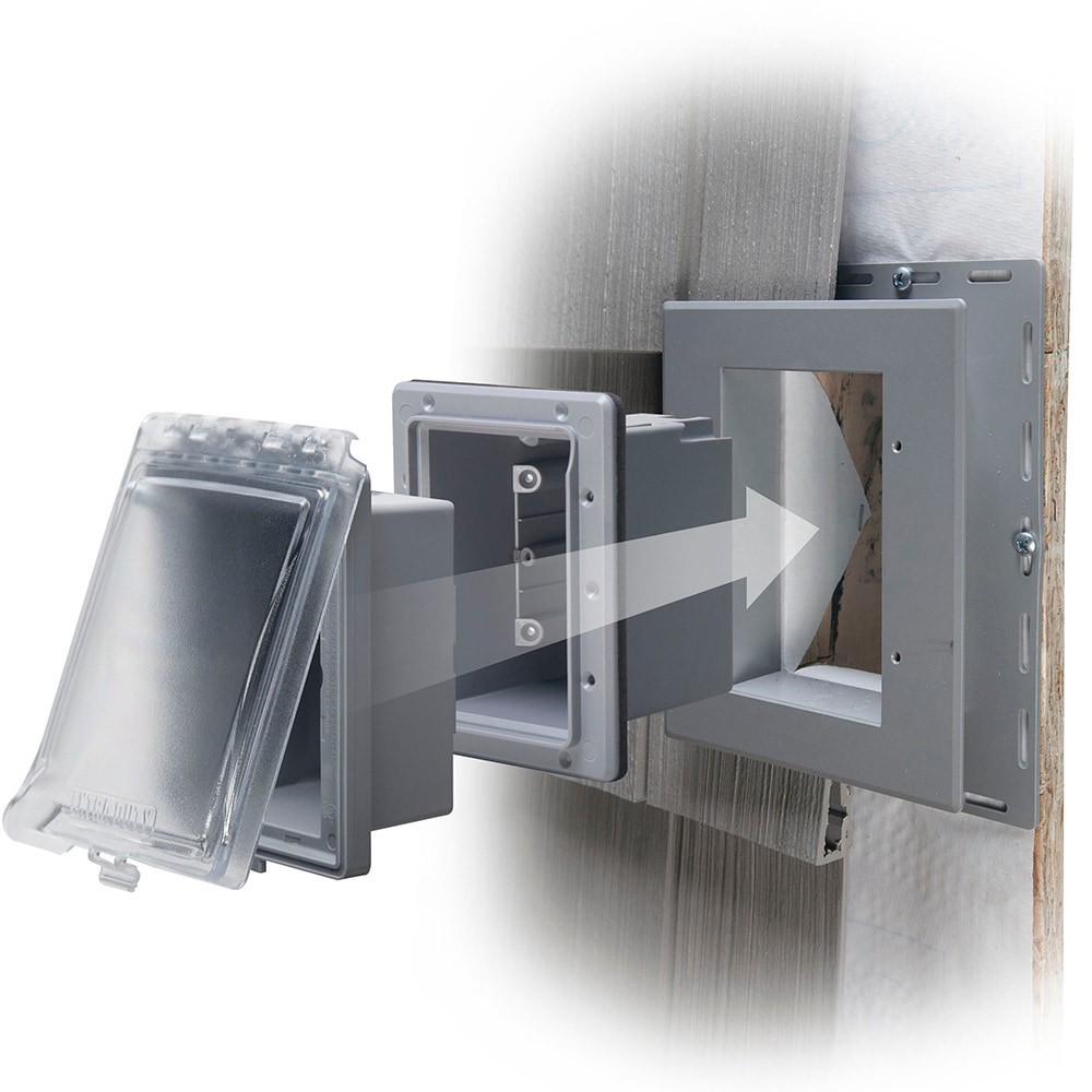 Accommodates duplex, GFCI or round receptacles (not included). Horizontal or vertical mount. 6-in-1, pre-configured for GFCI with knock-out technology for alternate devices. 2-3/4 in depth to accommod…
