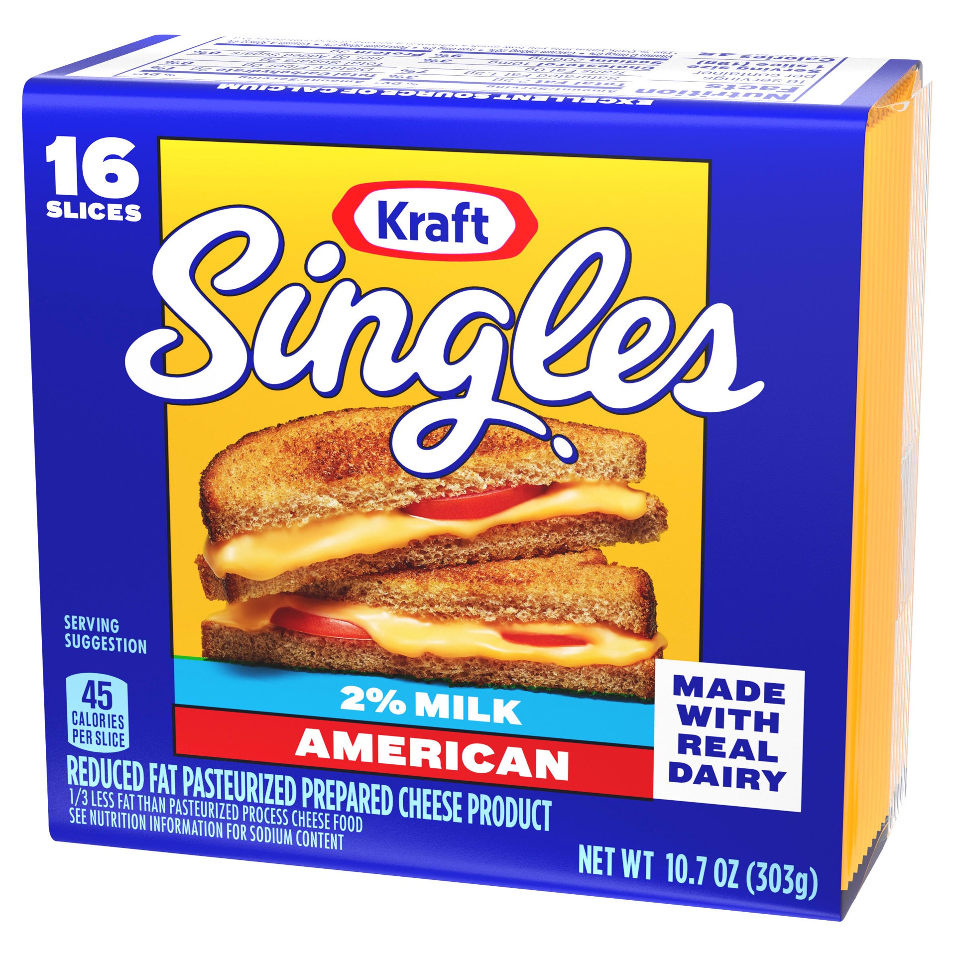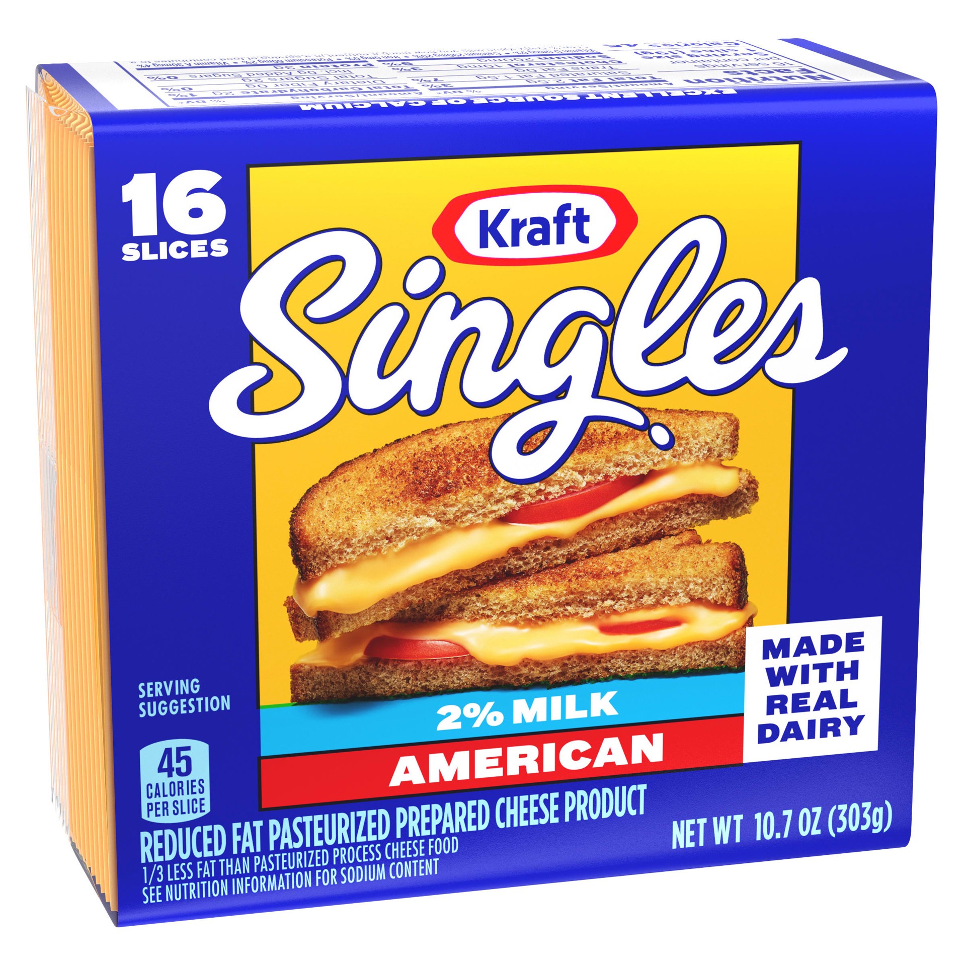 Kraft Singles 2% Milk Reduced Fat American Slices Pack - 16 Count