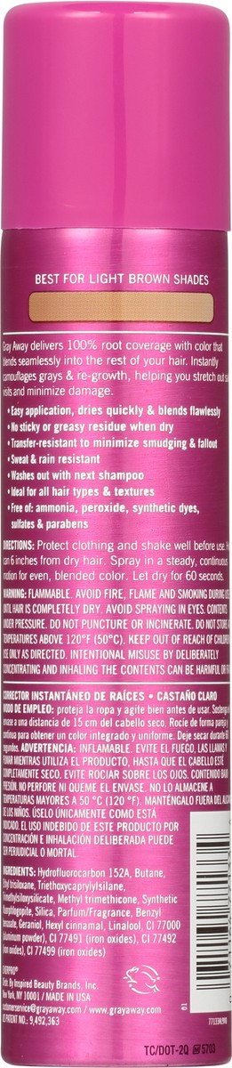 Gray Away Instant Root Cover Up Spray delivers 100% natural-looking, 24hr color coverage that blends seamlessly into the rest of your hair. Instantly camouflages grays and root regrowth, helping you s…