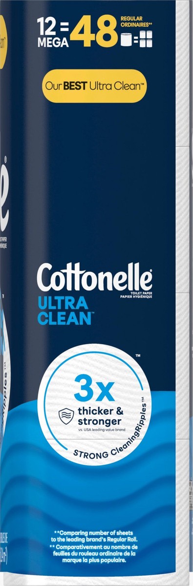Cottonelle Ultra Clean Toilet Paper, Strong Toilet Tissue, 12 Mega Rolls (12 Mega Rolls = 48 Regular Rolls), 284 Sheets Per Roll