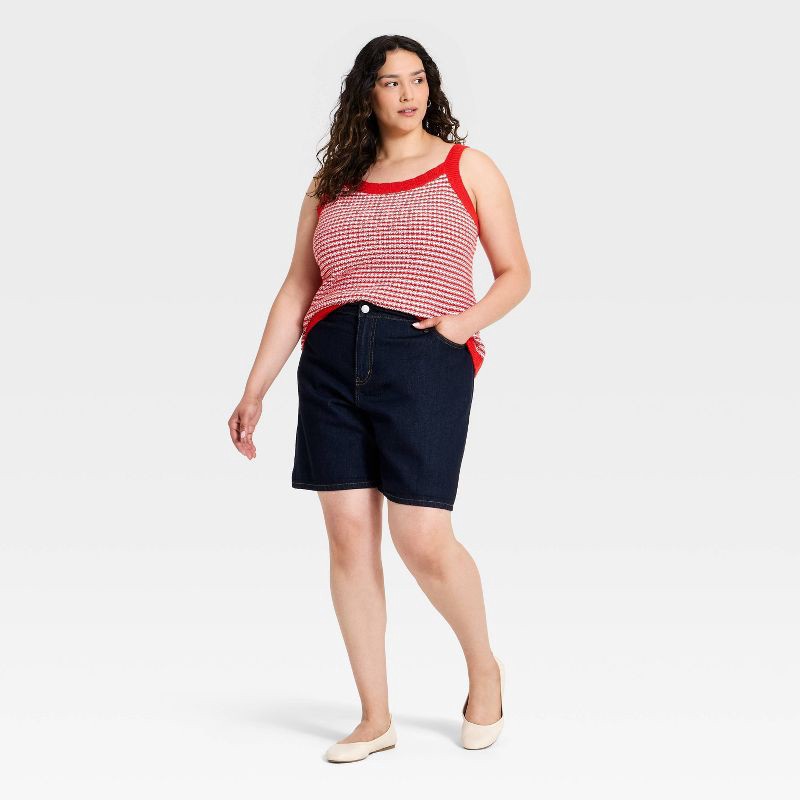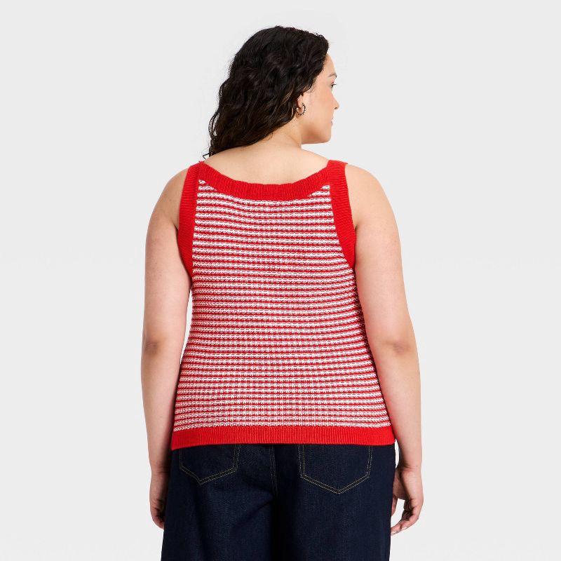 Women's Plus Square Neck Sweater Tank - Ava & Viv™ Red Striped 2X