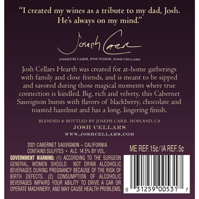 Josh Cellars Hearth Cabernet Sauvignon - 750ml Bottle