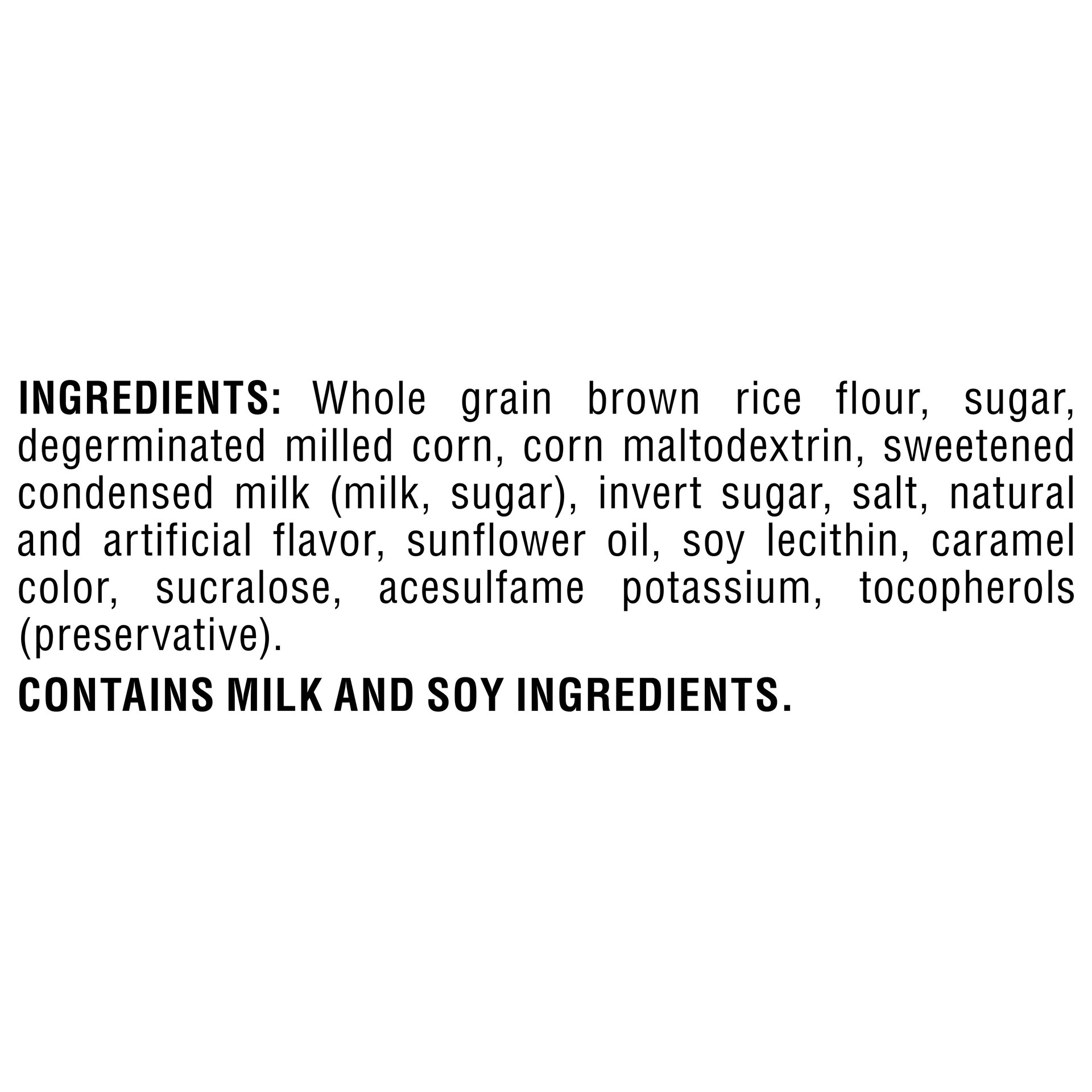 Whole Grain Brown Rice Flour, Sugar, Corn Grits, Corn Maltodextrin, Sweetened Condensed Milk (Milk, Sugar), Invert Sugar, Salt, Natural Flavor, Vegetable Oil (Canola and/or Sunflower Oil), Cooked Appl…