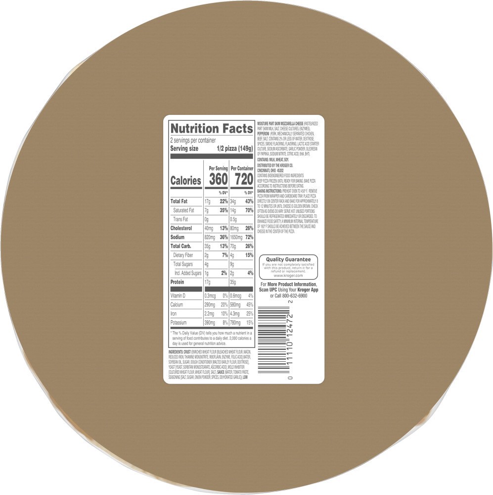 Crust (Enriched Wheat Flour [Bleached Wheat Flour, Niacin, Reduced Iron, Thiamine Mononitrate, Riboflavin, Enzyme, Folic Acid, Water, Soybean Oil, Sugar, Dough Conditioner [Malted Barley Flour, Dextro…