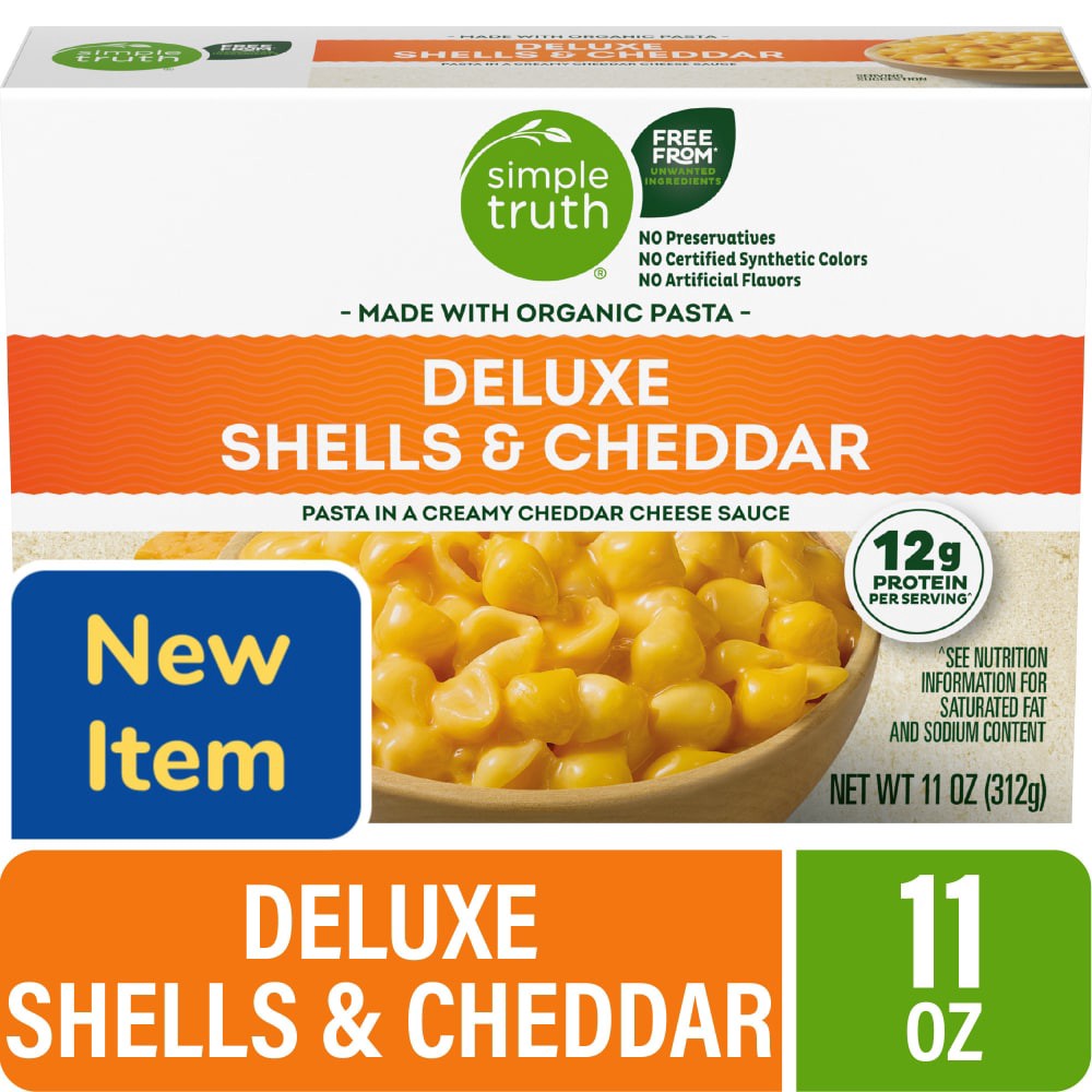 Simple Truth® Deluxe Shells and Cheddar makes for a marvelous meal. Indulge in this rich and creamy organic mac and cheese, with 12g protein per serving to satisfy those comfort food cravings. Delight…