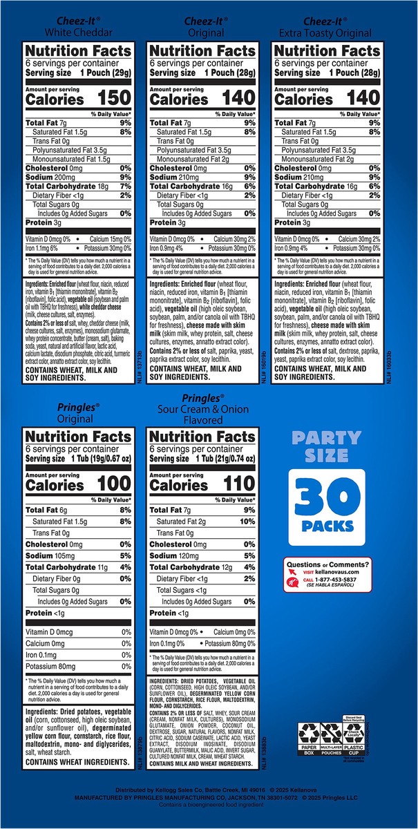 Cheez-It, Pringles, Salty Snacks, Party Size, Variety Pack, 26.58oz Box (30 Packs)