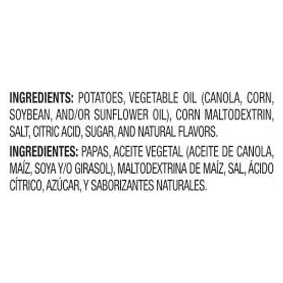 Potatoes, Vegetable Oil (Canola, Corn, Soybean, and/or Sunflower Oil), Maltodextrin (Made from Corn), Salt, Citric Acid, Sugar, and Natural Flavors.