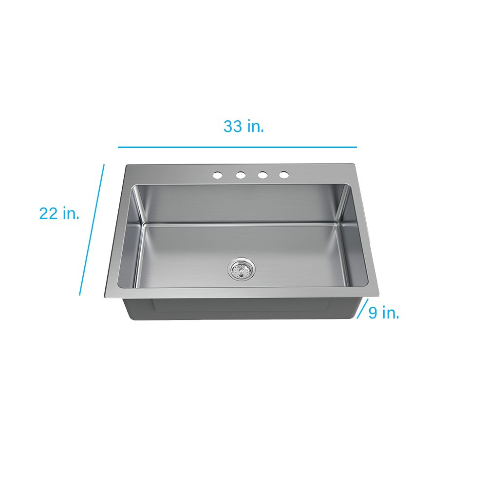 These single bowl kitchen sinks are constructed with premium 304 grade stainless steel. Flexible dual mounting aspect allows for configuring either a top mount or undermount kitchen sink option. 9 inc…