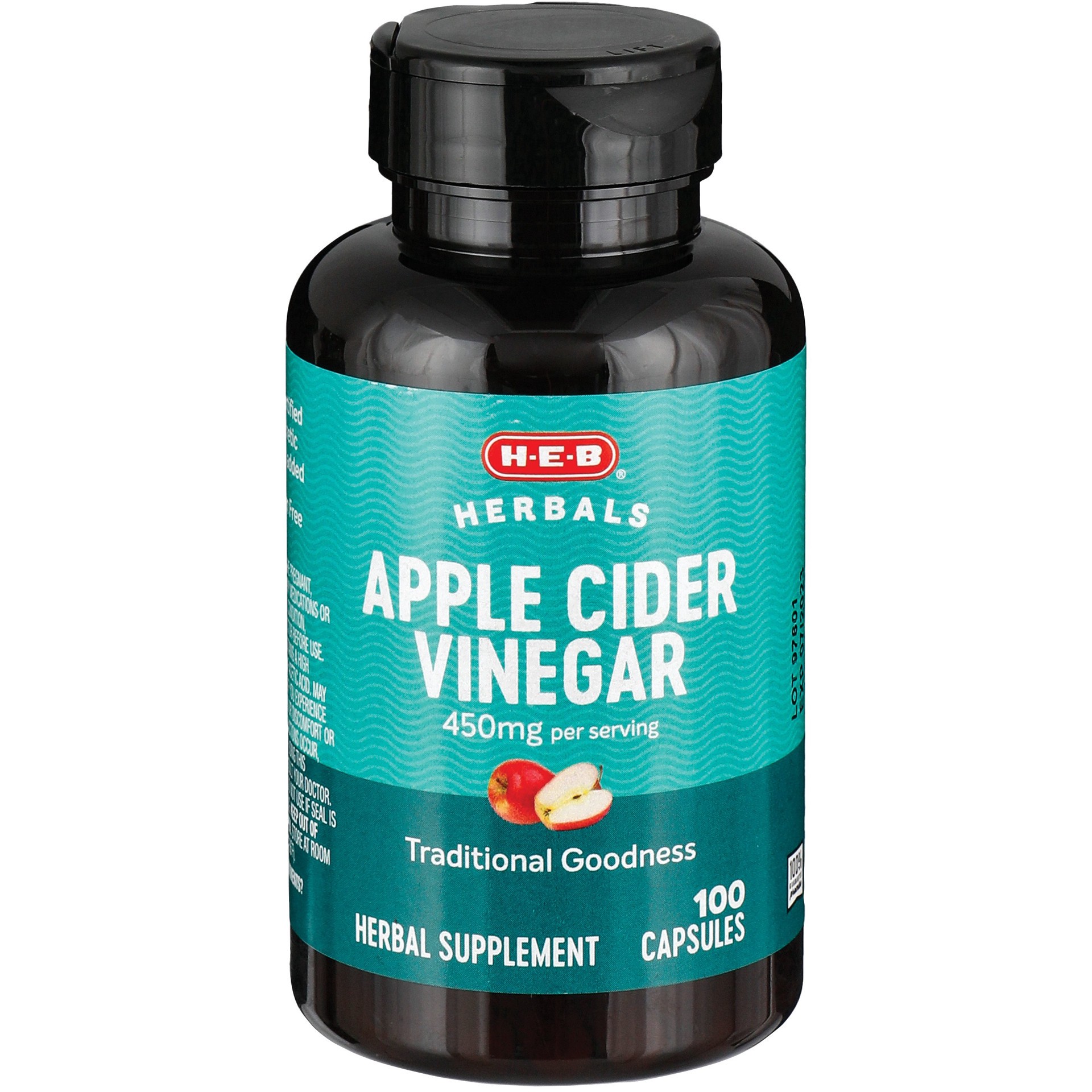 Take these H-E-B Herbals Apple Cider Vinegar capsules. Add them to your routine and get a supplement with no certified synthetic colors.• 100-count bottle of apple cider vinegar capsules• Herbal suppl…