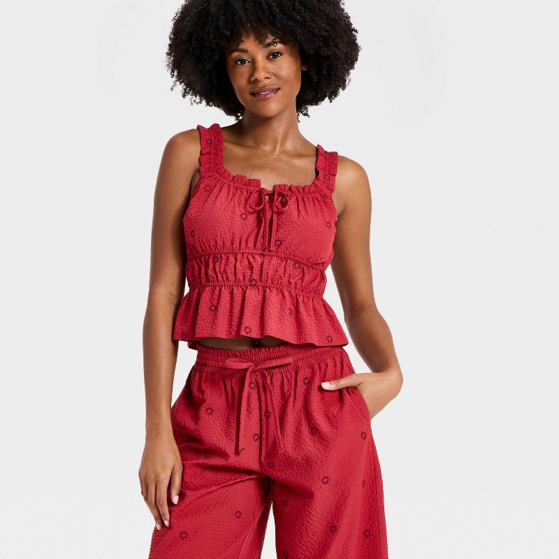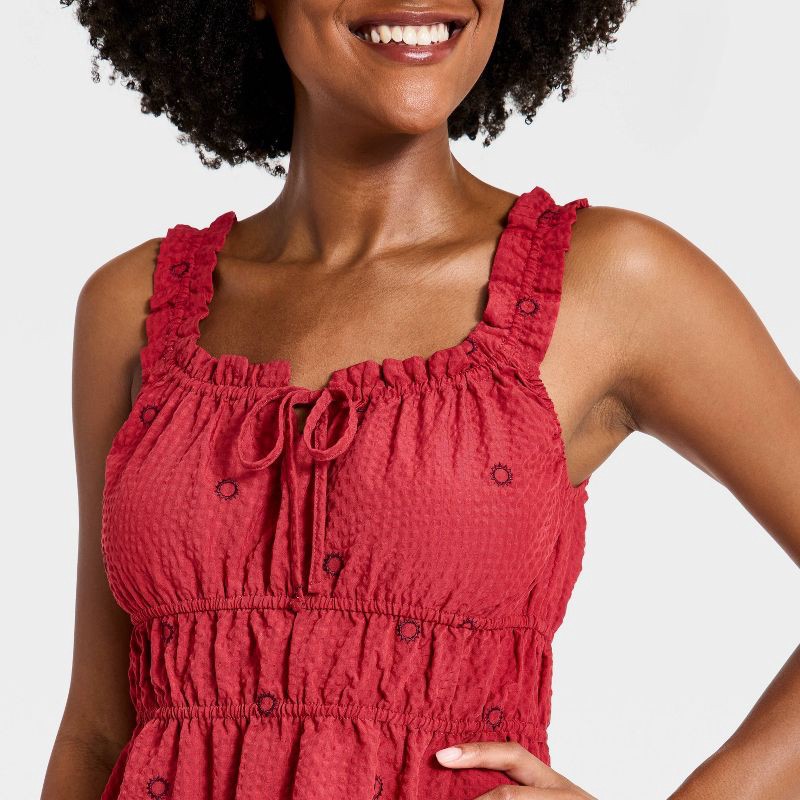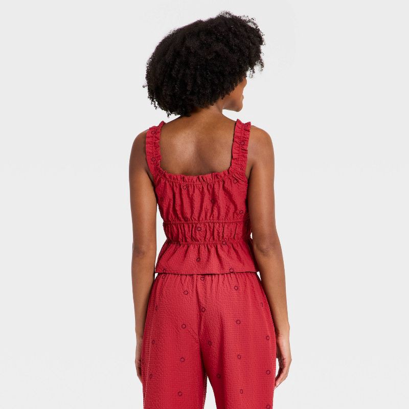 Women's Ruffle Seersucker Tie-Front Tank Top - Auden™ Red XS