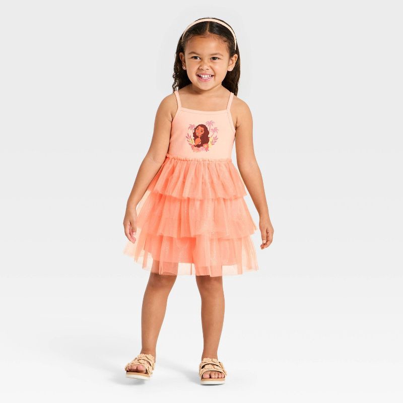 Toddler Girls' Moana Dress - Peach Orange 4T