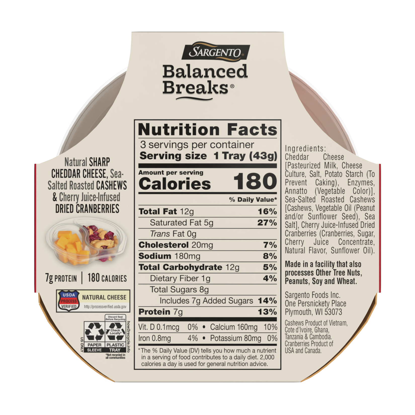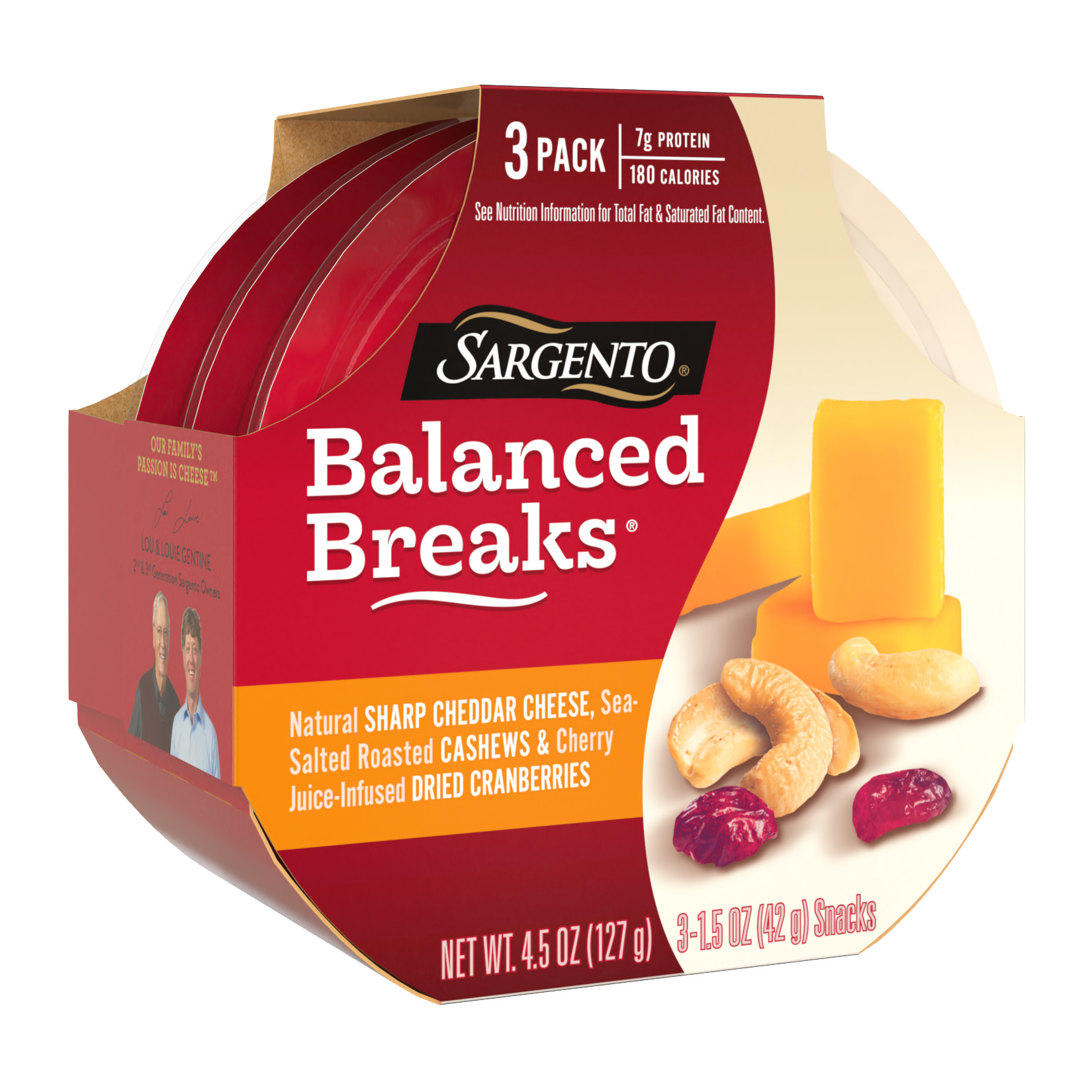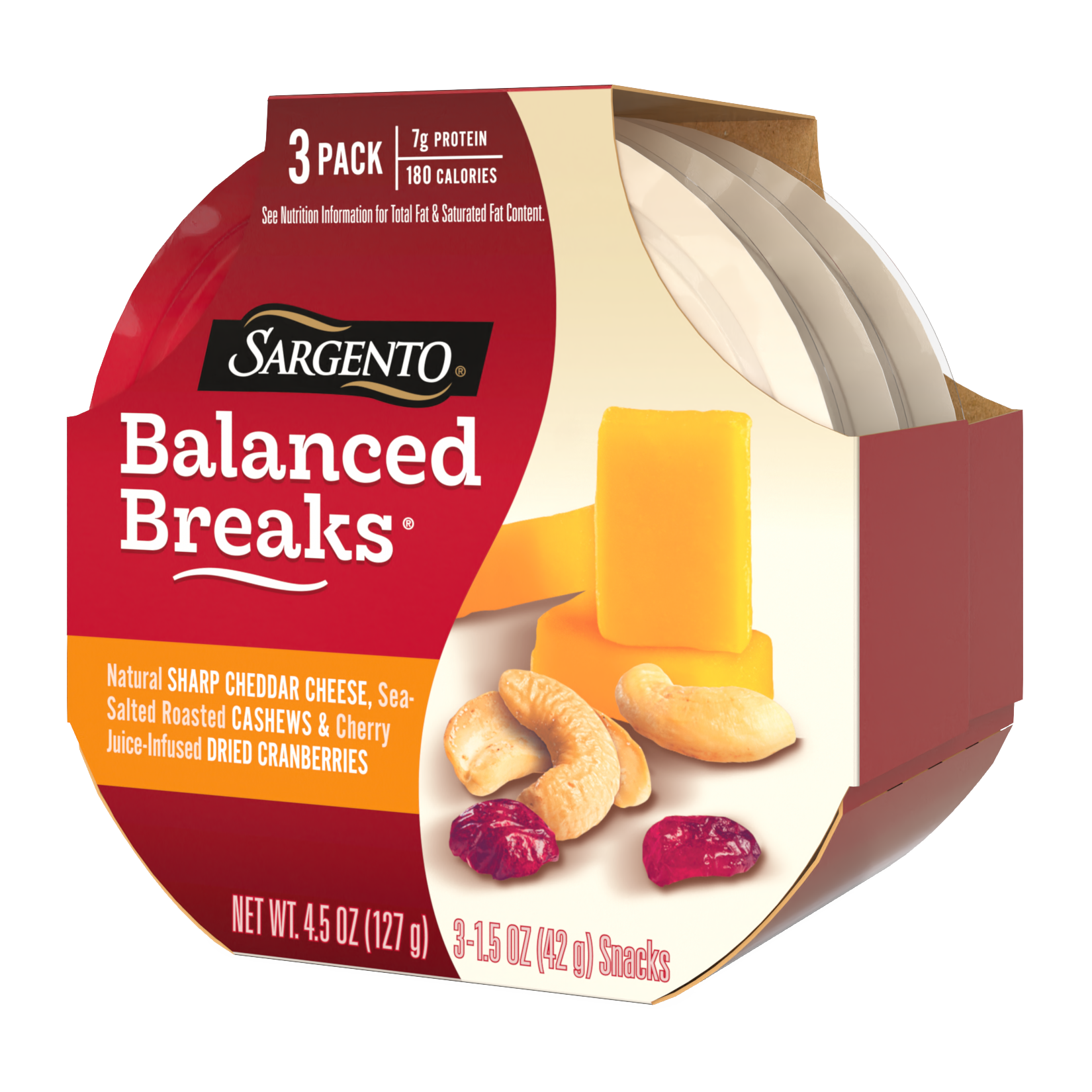 You need a snack, and you deserve a break. So get away from your desk. Take a walk. And enjoy a Sargento Balanced Breaks Sharp Cheddar Natural Cheese, Sea-Salted Roasted Cashews and Cherry Juice-Infus…