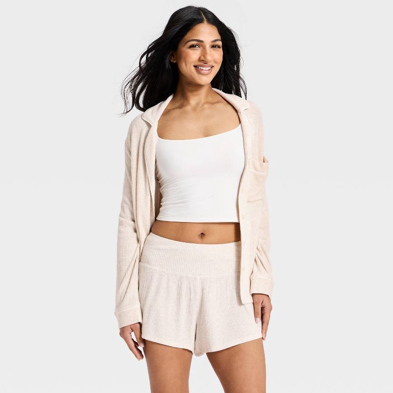 Women's Cozy Ribbed Shorts - Auden™ Oatmeal XS