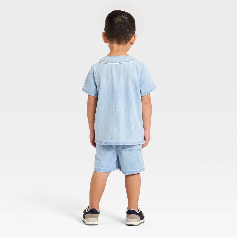Toddler Boys' Denim Button-Up Shirt & Shorts Set - Cat & Jack™ Light Wash 5T