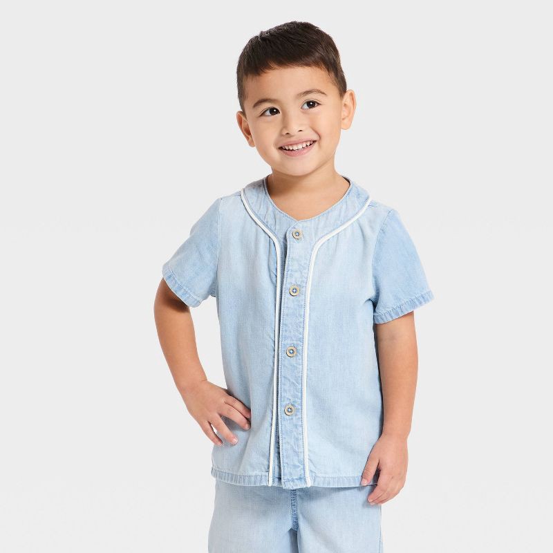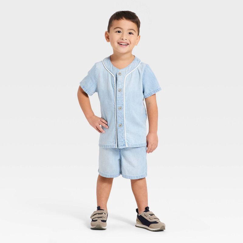 Lend cute, comfy style to their casualwear closet with this Denim Button-Up Shirt & Shorts Set from Cat & Jack™. This set includes a button-down shirt and pull-on shorts, both crafted from cotton twil…