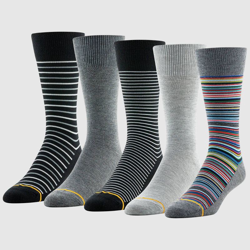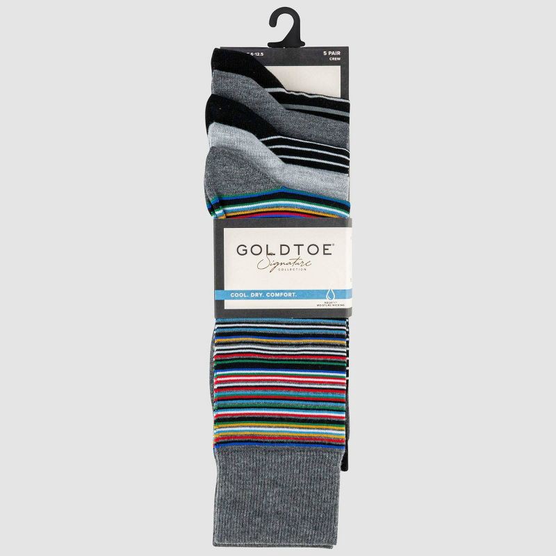GOLDTOE Signature Collection Signature Gold by GOLDTOE Men's Frankie Striped Crew Socks 5pk - Charcoal/Light Gray/Black 6-12.5