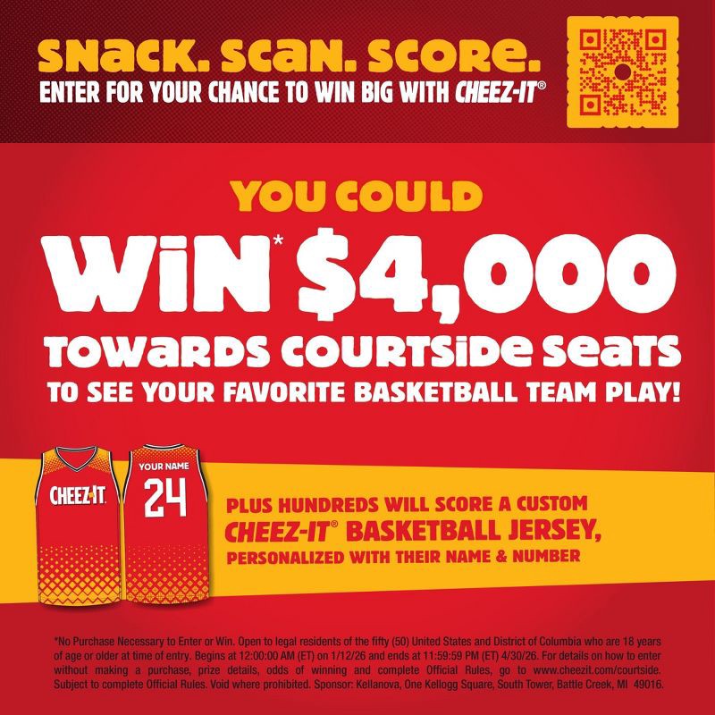- Score big with the limited-edition Jimmy Butler Cheez-It box; Scan the code for a shot at prizes (See box for details on full terms and conditions)