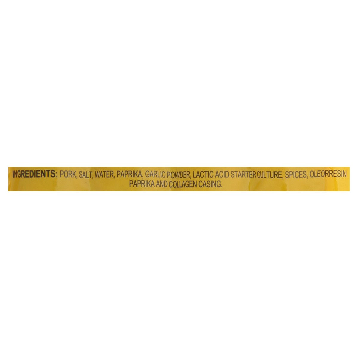 Pork, Salt, Water, Paprika, Garlic Powder, Lactic Acid Starter Culture, Spices, Oleoresin Paprika and Collagen Casing.