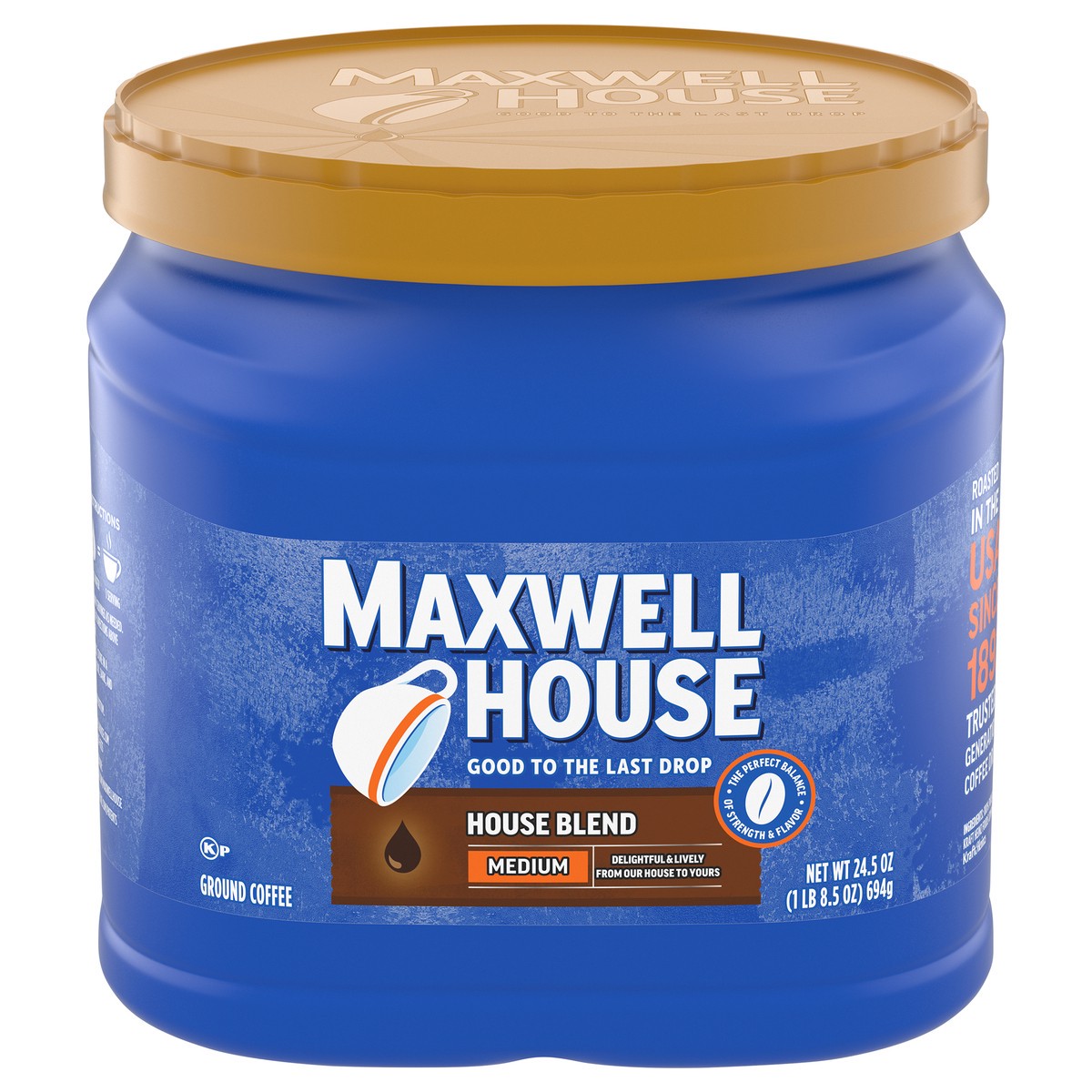Delightful & lively, from our house to yours. Good to the last drop. The perfect balance of strength & flavor. Roasted in the USA since 1892. Trusted by generations of coffee drinkers.