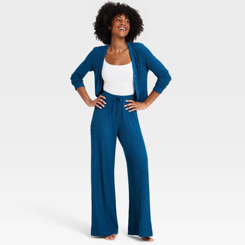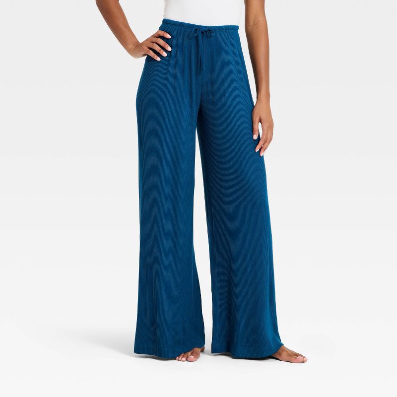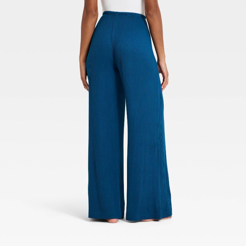 Women's Cozy Ribbed Wide Leg Pants - Auden™ Dark Blue XL